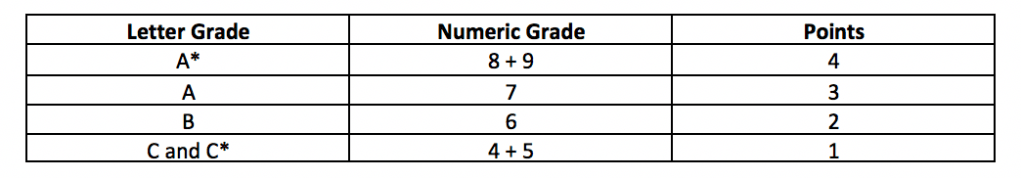 UCAT score plus GCSE grades are assigned points to get your interview (if your undergrad/school leaver) your UCAT score is worth 4 of a possible 6 points for UCAT the rest of the points will be made up with hour GCSE grades (or equivalent). In previous years the points required to get an interview are between 30-34. Therefore you need about 30 more points from your best 9 GCSEs. I have included the points to grade allocation below: